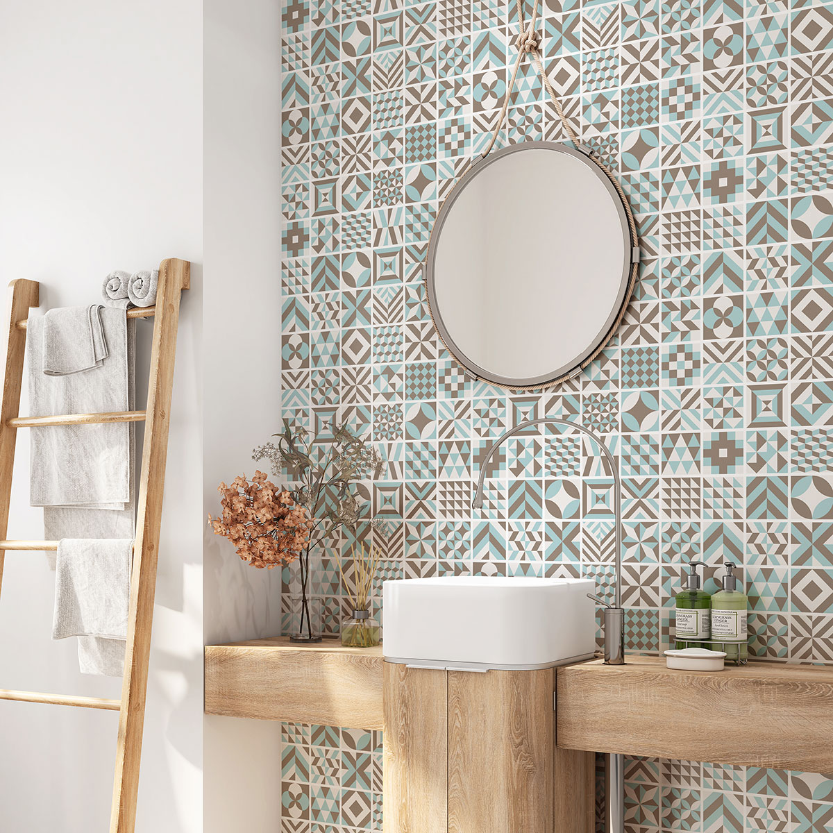Crédence adhésive salle de bain - Motif carreaux de ciment