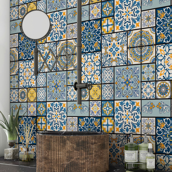 Crédence adhésive salle de bain - Motif carreaux de ciment