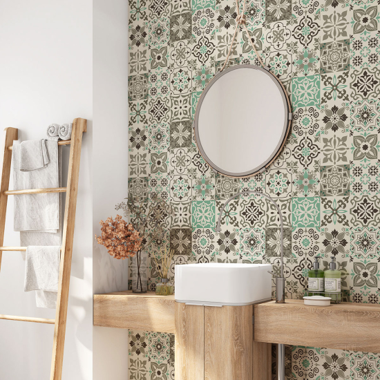 Crédence adhésive salle de bain - Motif carreaux de ciment