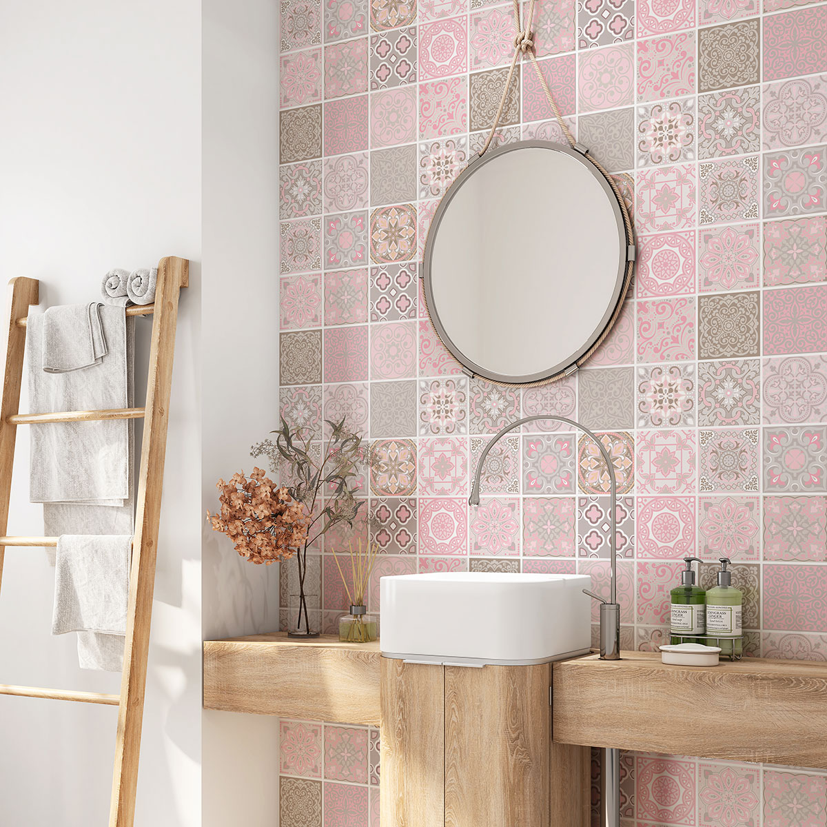 Crédence adhésive salle de bain - Motif carreaux de ciment