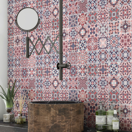 Crédence adhésive salle de bain - Motif carreaux de ciment