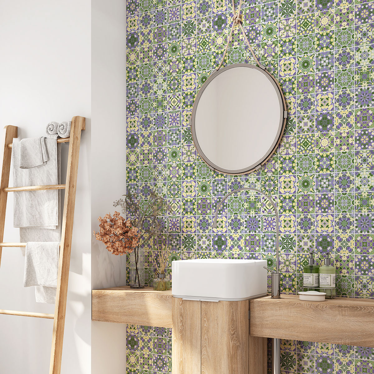Crédence adhésive salle de bain - Motif carreaux de ciment