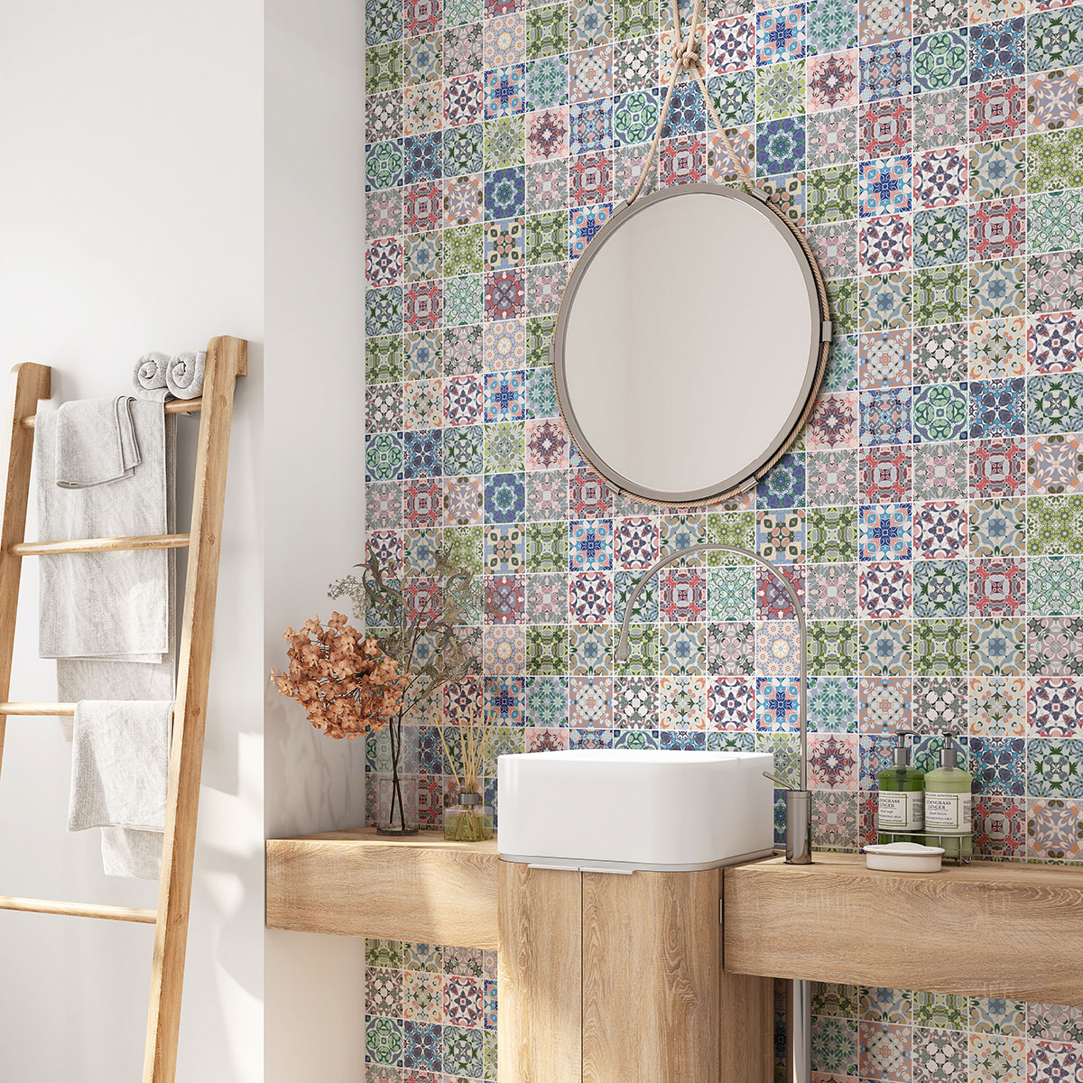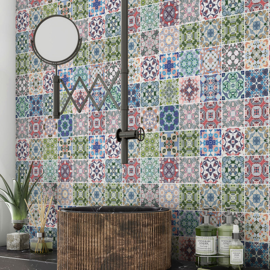 Crédence adhésive salle de bain - Motif carreaux de ciment
