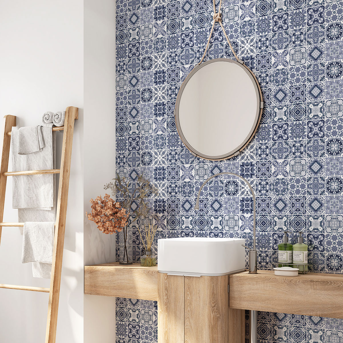 Crédence adhésive salle de bain - Motif carreaux de ciment
