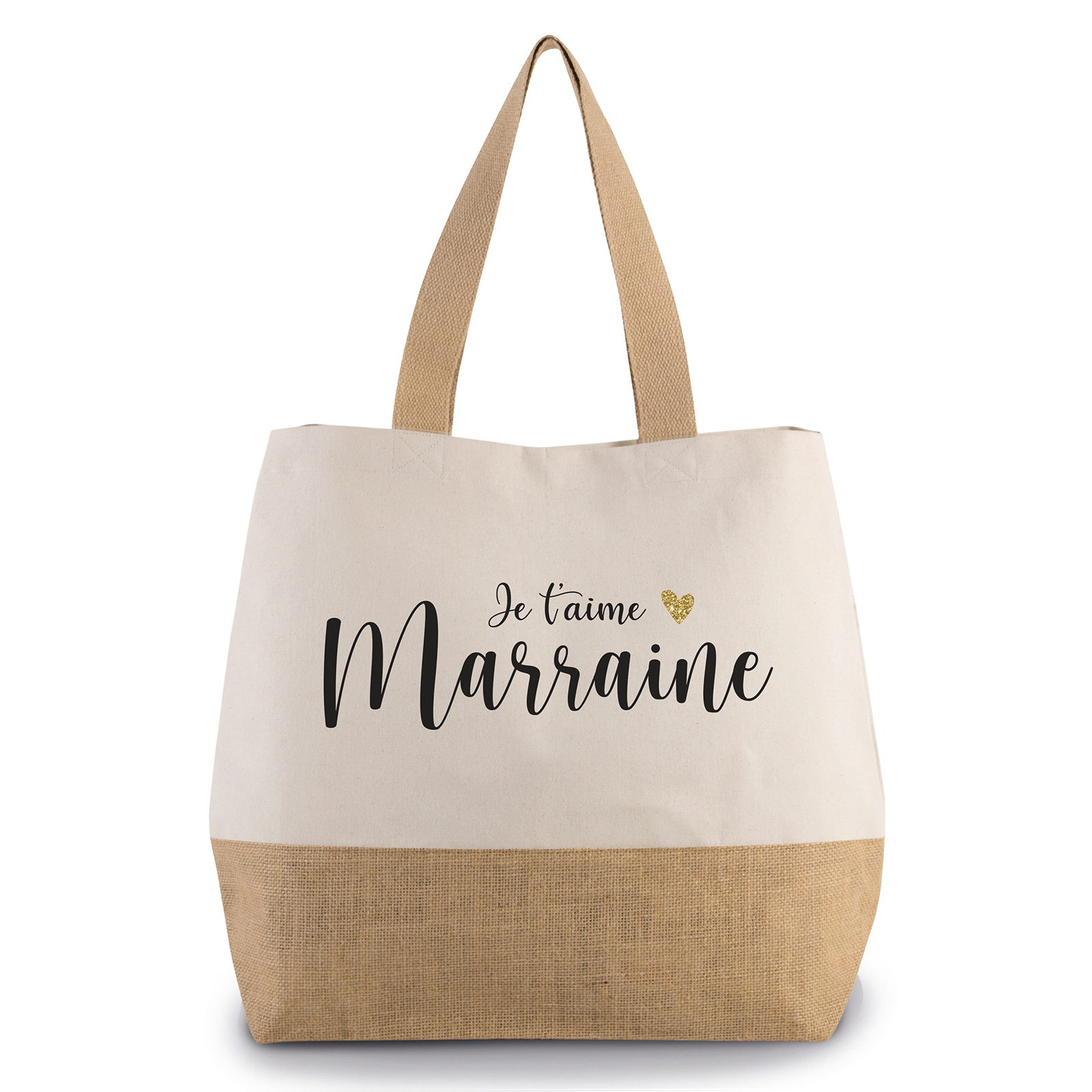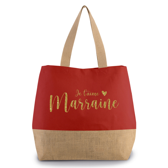 Grand Sac Coton et Jute - Je t'aime marraine