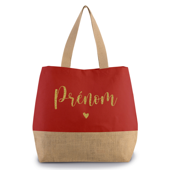 Craquez pour ce joli sac en toile de coton et jute de grande taille, idéal pour transporter vos affaires ou celles de votre enfant.