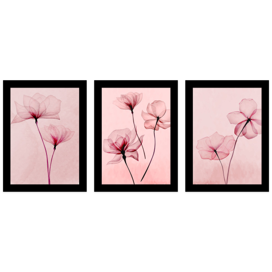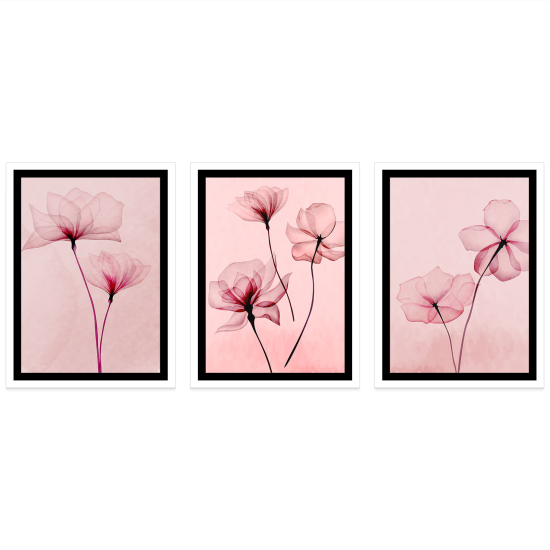 Lot de 3 Affiches / Posters Triptyque - Fleurs roses