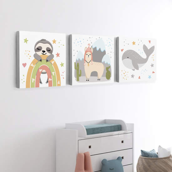 Lot de 3 Tableaux sur toile Triptyque Enfants - Animaux