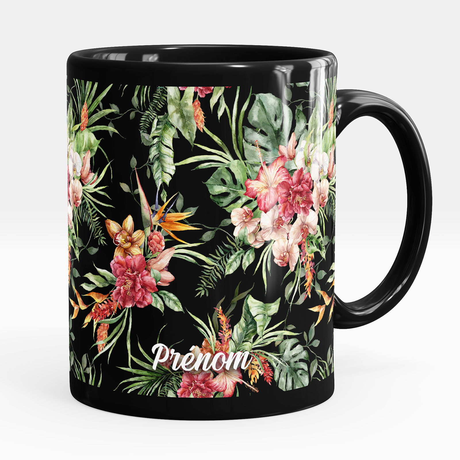 www.lumalea.fr > Mugs / Gourdes > Mugs Noirs Intégral Adultes > Mug - Tasse personnalisée Noir intégral - Fleurs