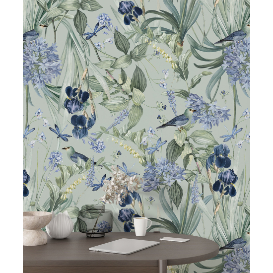Papier peint motif XL - Fleurs Oiseaux
