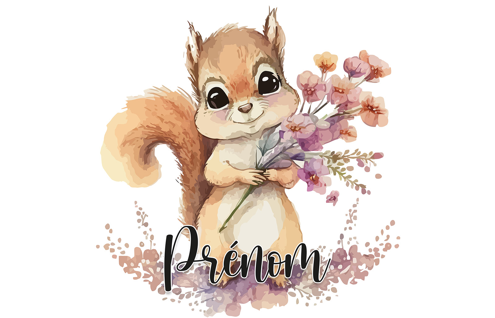 Papier peint panoramique enfant avec prénom personnalisable - Écureuil - 3410