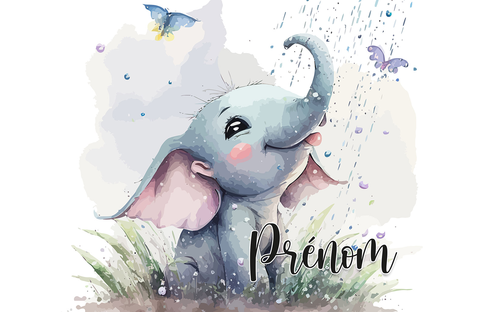 Papier peint panoramique enfant avec prénom personnalisable - Éléphanteau - 3438