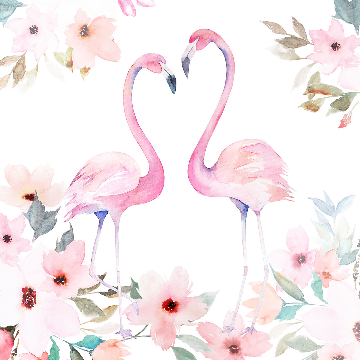 Papier peint panoramique Enfants - Flamants roses Aquarelle