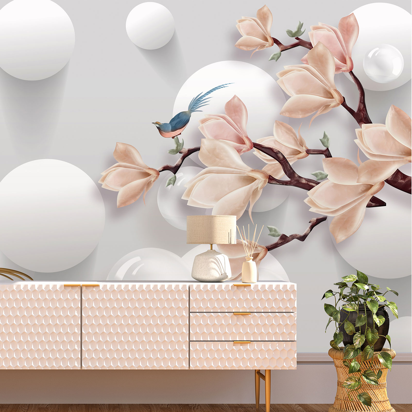 Papier peint panoramique - Magnolias Effet 3D