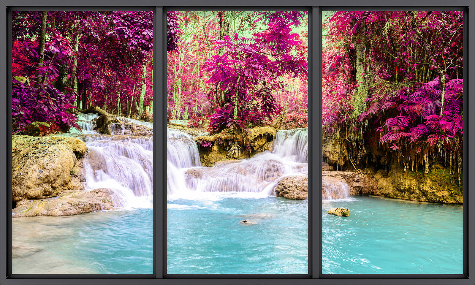 www.lumalea.fr > Papiers Peints > > > Papiers Peints Trompe L'oeil > Baies vitrées Trompe-l'œil > Papier peint panoramique Trompe l'œil baie vitrée - Cascades