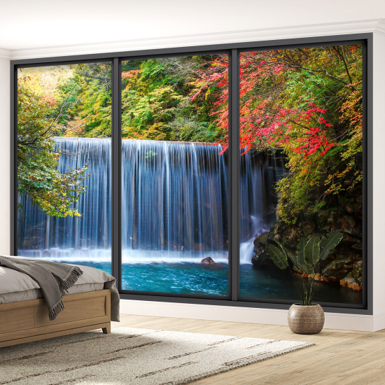 www.lumalea.fr > Papiers Peints > > > Papiers Peints Trompe L'oeil > Baies vitrées Trompe-l'œil > Papier peint panoramique Trompe l'œil baie vitrée - Cascades