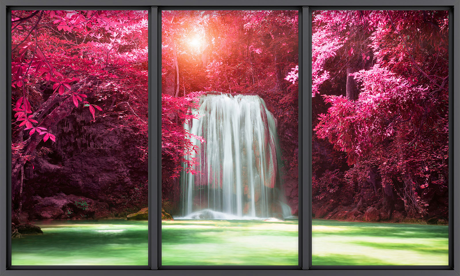 www.lumalea.fr > Papiers Peints > > > Papiers Peints Trompe L'oeil > Baies vitrées Trompe-l'œil > Papier peint panoramique Trompe l'œil baie vitrée - Cascades