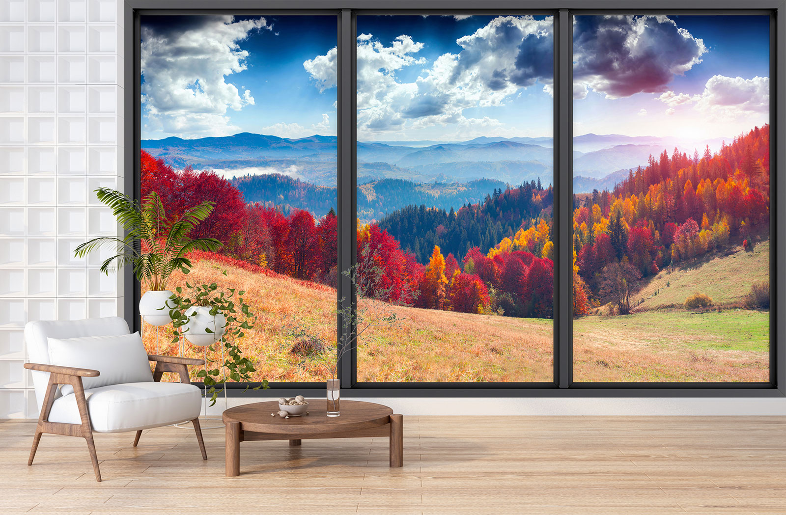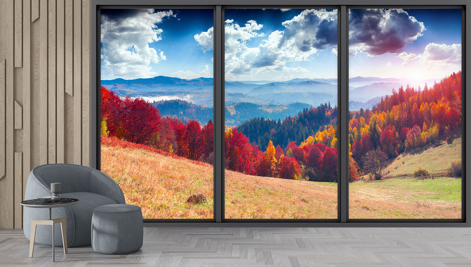 www.lumalea.fr > Papiers Peints > > > Papiers Peints Trompe L'oeil > Baies vitrées Trompe-l'œil > Papier peint panoramique Trompe l'œil baie vitrée - Forêt