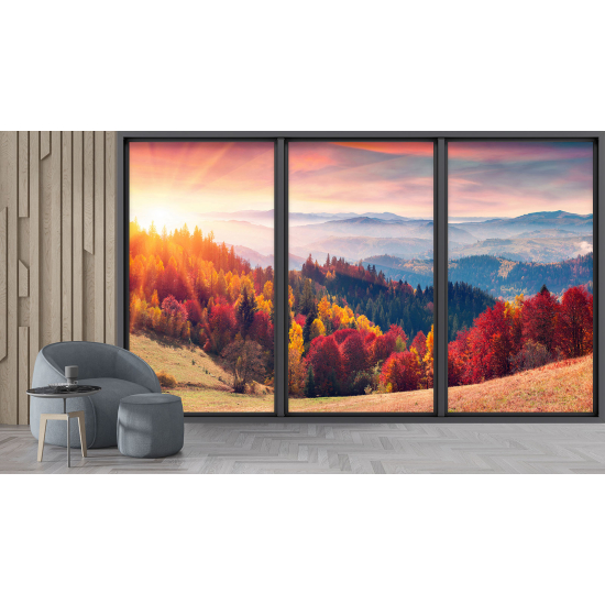 Papier peint panoramique Trompe l'œil baie vitrée - Forêt automne