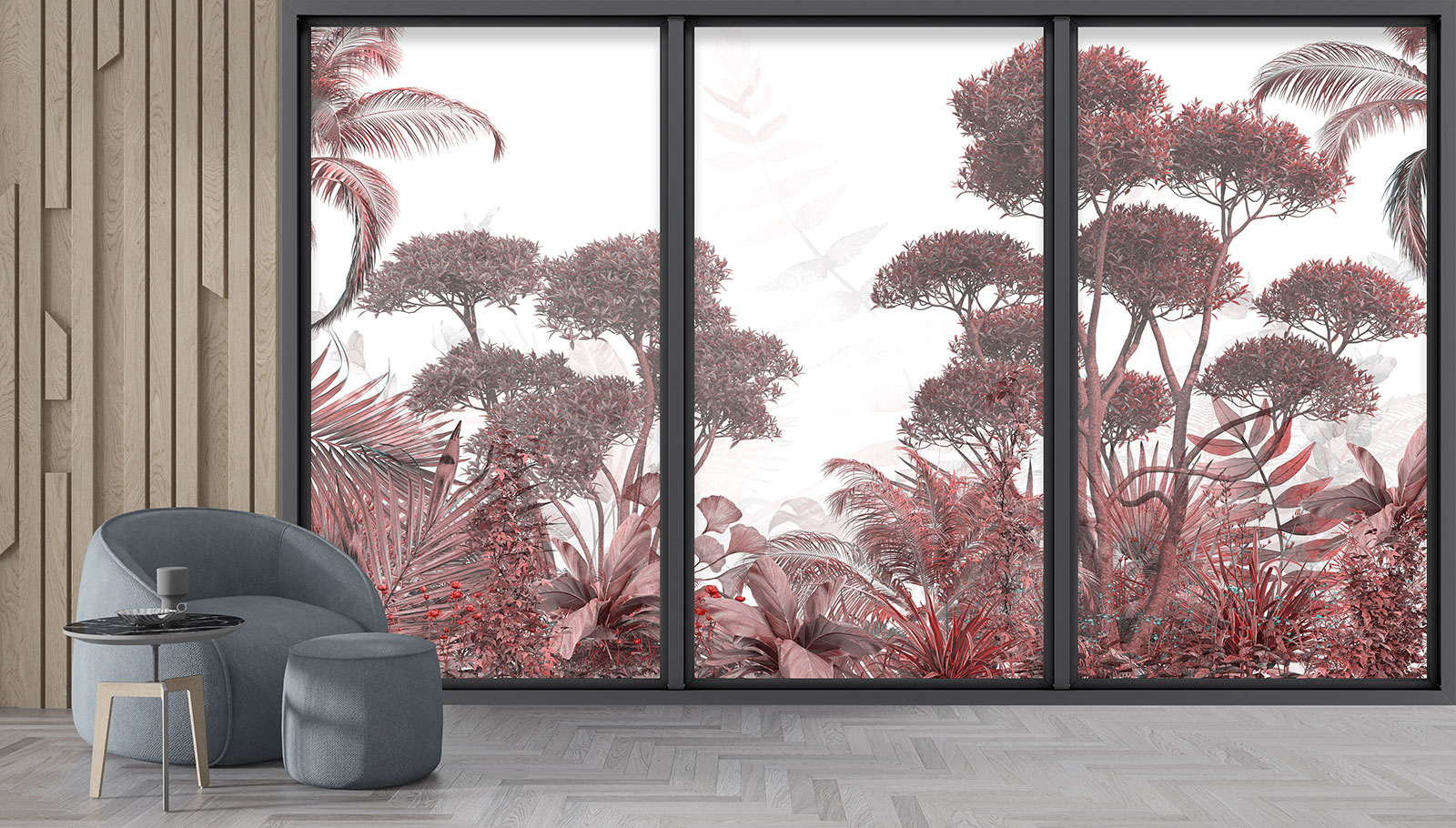 www.lumalea.fr > Papiers Peints > > > Papiers Peints Trompe L'oeil > Baies vitrées Trompe-l'œil > Papier peint panoramique Trompe l'œil baie vitrée - Forêt tropicale
