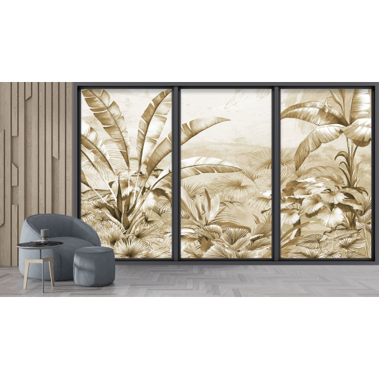 www.lumalea.fr > Papiers Peints > > > Papiers Peints Trompe L'oeil > Baies vitrées Trompe-l'œil > Papier peint panoramique Trompe l'œil baie vitrée - Forêt tropicale