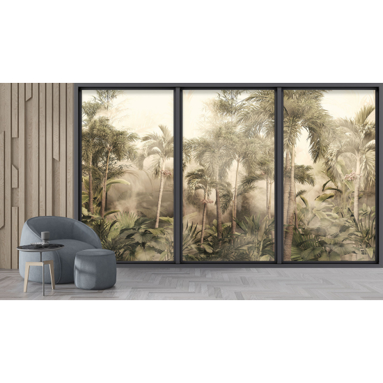 Papier peint panoramique Trompe l'œil baie vitrée - Jungle