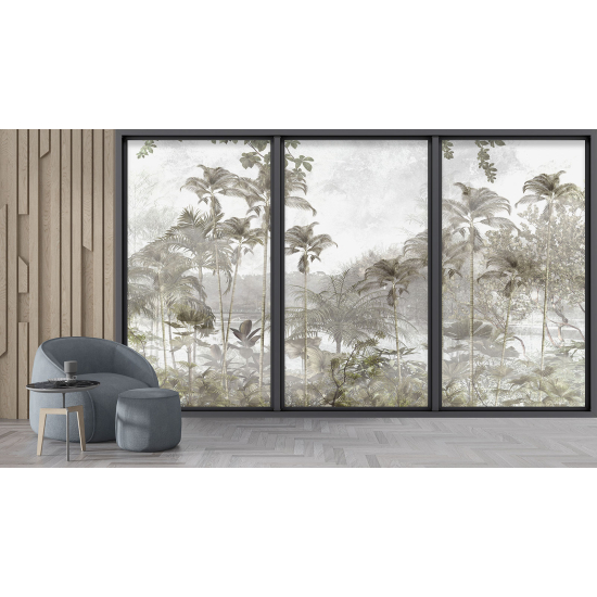 Papier peint panoramique Trompe l'œil baie vitrée - Jungle