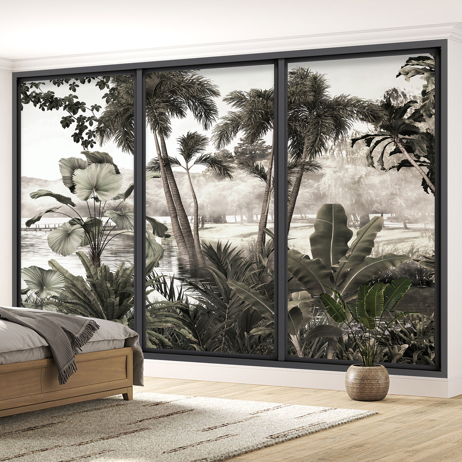 www.lumalea.fr > Papiers Peints > > > Papiers Peints Trompe L'oeil > Baies vitrées Trompe-l'œil > Papier peint panoramique Trompe l'œil baie vitrée - Jungle