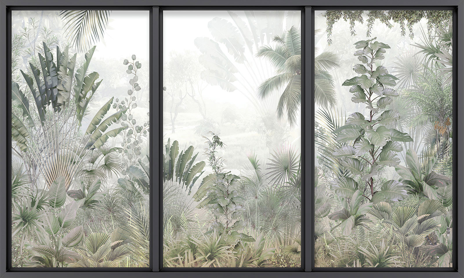 www.lumalea.fr > Papiers Peints > > > Papiers Peints Trompe L'oeil > Baies vitrées Trompe-l'œil > Papier peint panoramique Trompe l'œil baie vitrée - Jungle