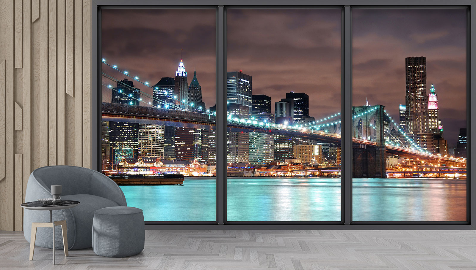 Papier peint panoramique Trompe l'œil baie vitrée - New york