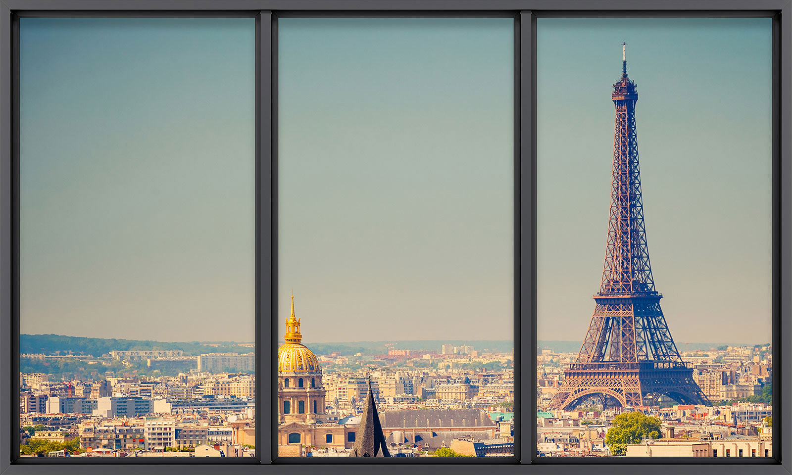 Papier peint panoramique Trompe l'œil baie vitrée - Paris tour Eiffel