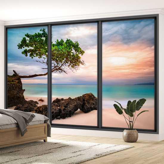 Papier peint panoramique Trompe l'œil baie vitrée - Plage