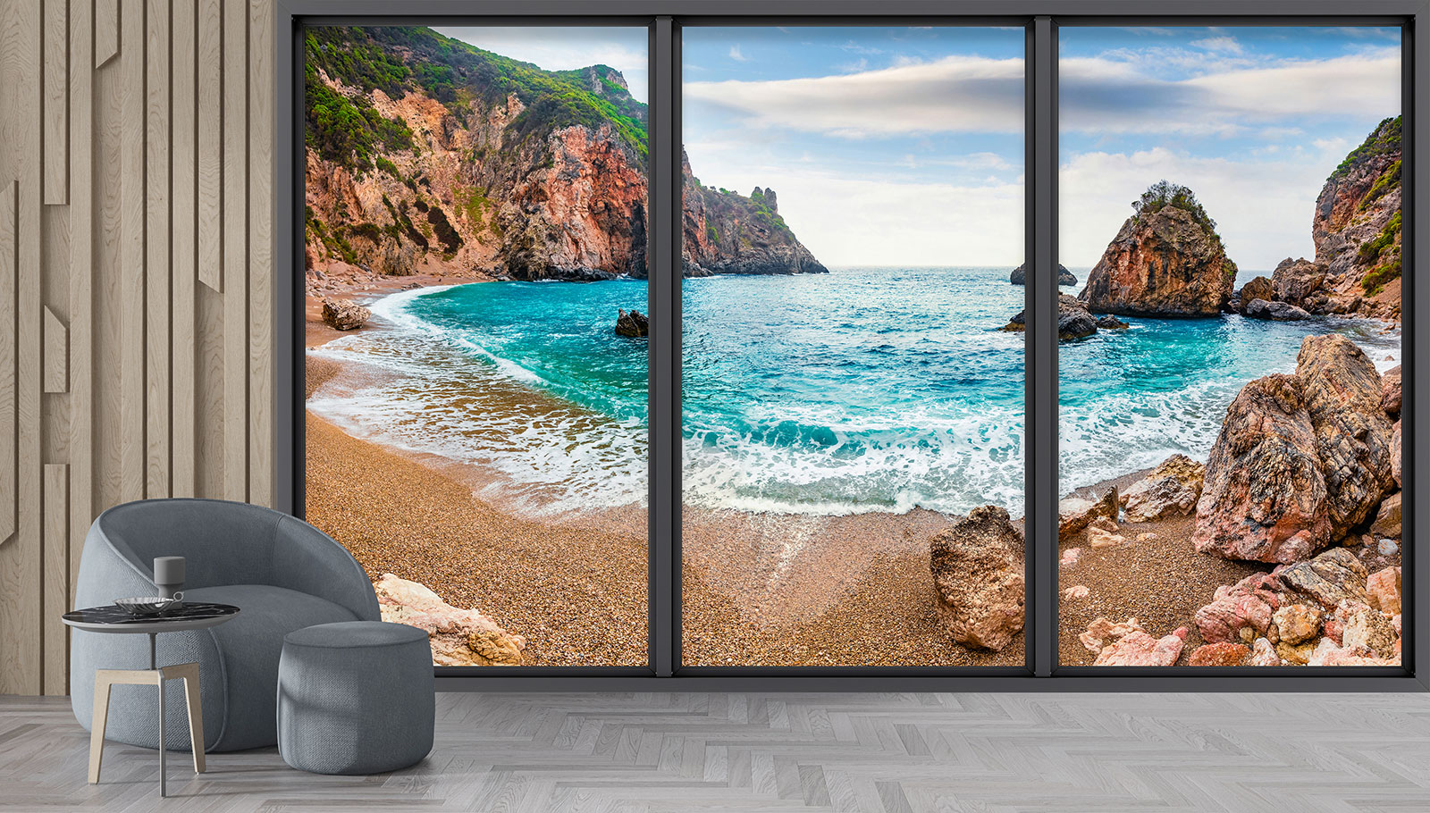 Papier peint panoramique Trompe l'œil baie vitrée - Plage