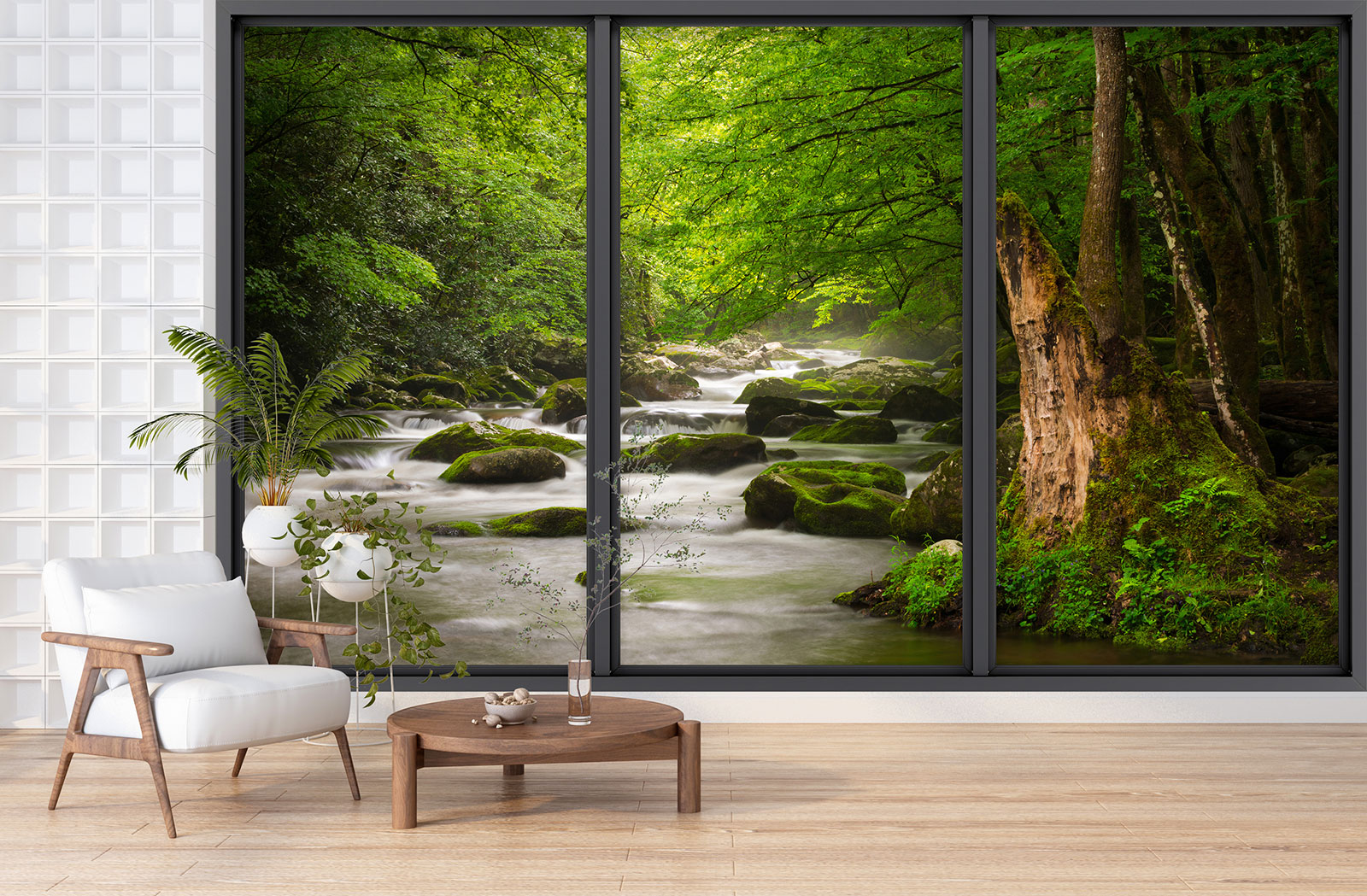Papier peint panoramique Trompe l'œil baie vitrée - Rivière
