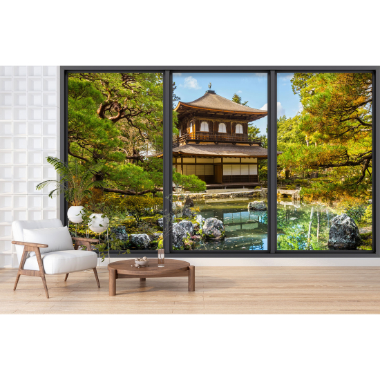Papier peint panoramique Trompe l'œil baie vitrée - Temple japonais