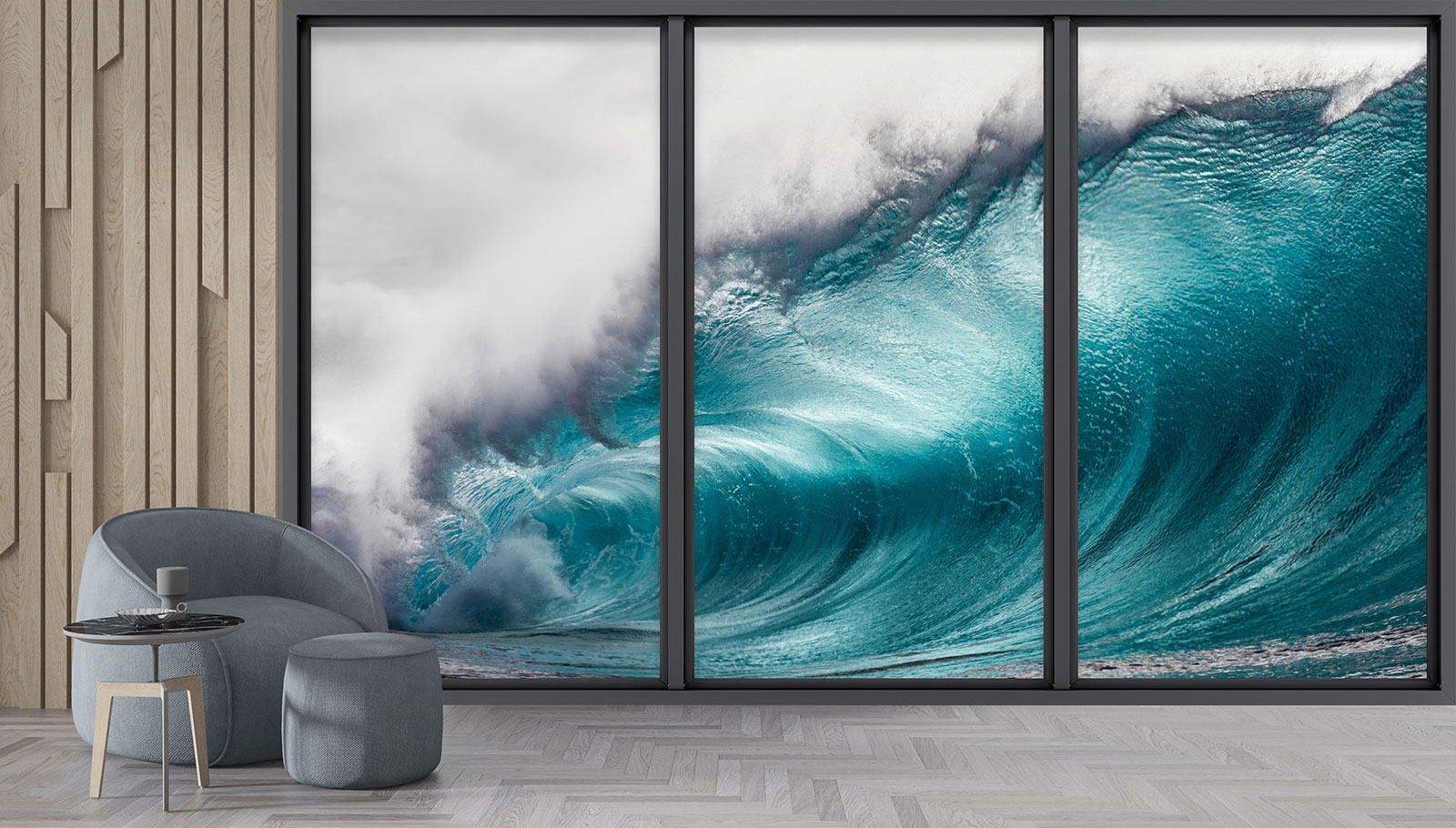 Papier peint panoramique Trompe l'œil baie vitrée - Vague