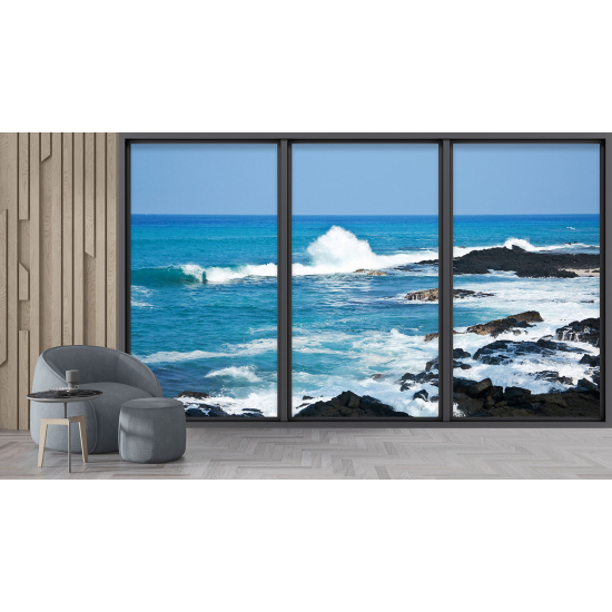 Papier peint panoramique Trompe l'œil baie vitrée - Vue mer