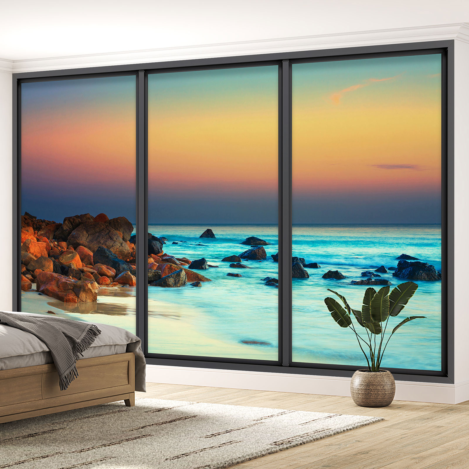 Papier peint panoramique Trompe l'œil baie vitrée - Vue mer