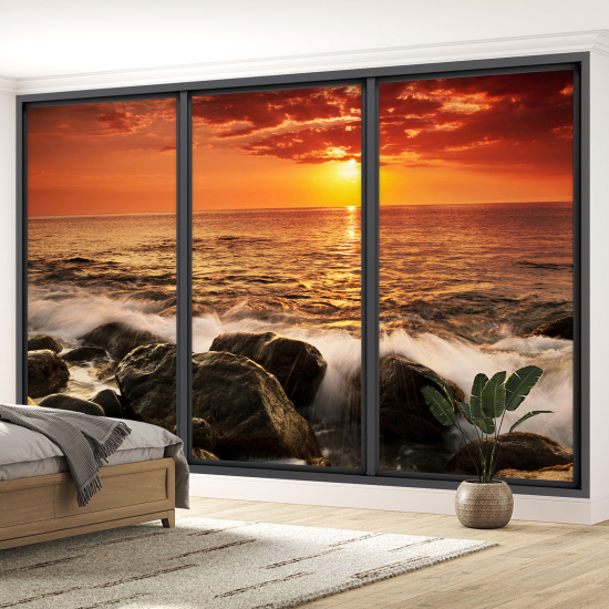 Papier peint panoramique Trompe l'œil baie vitrée - Vue mer