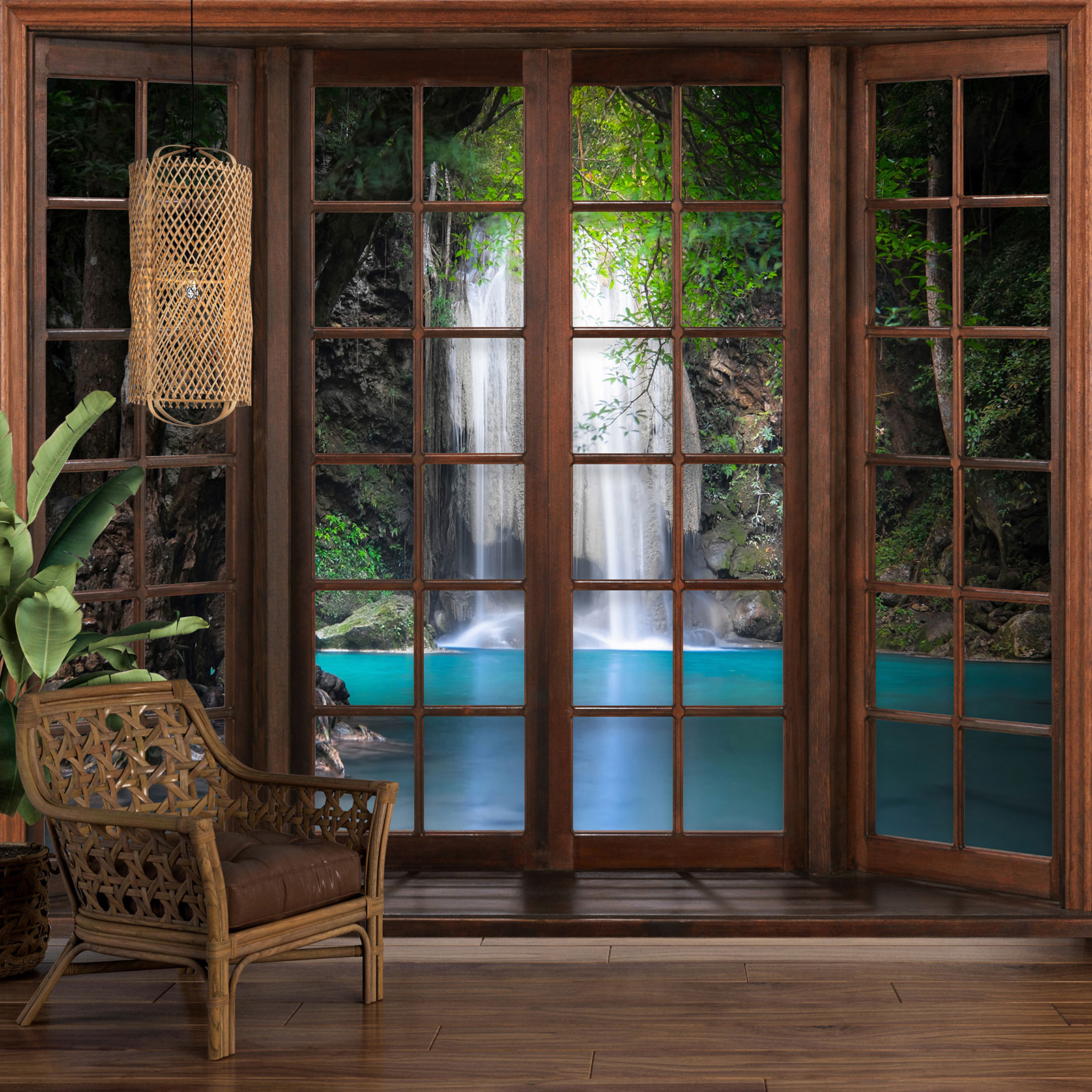 www.lumalea.fr > Papiers Peints > > > Papiers Peints Trompe L'oeil > Fenêtres Trompe-l'œil > Papier peint panoramique Trompe l'œil Fenêtre en bois - Cascades