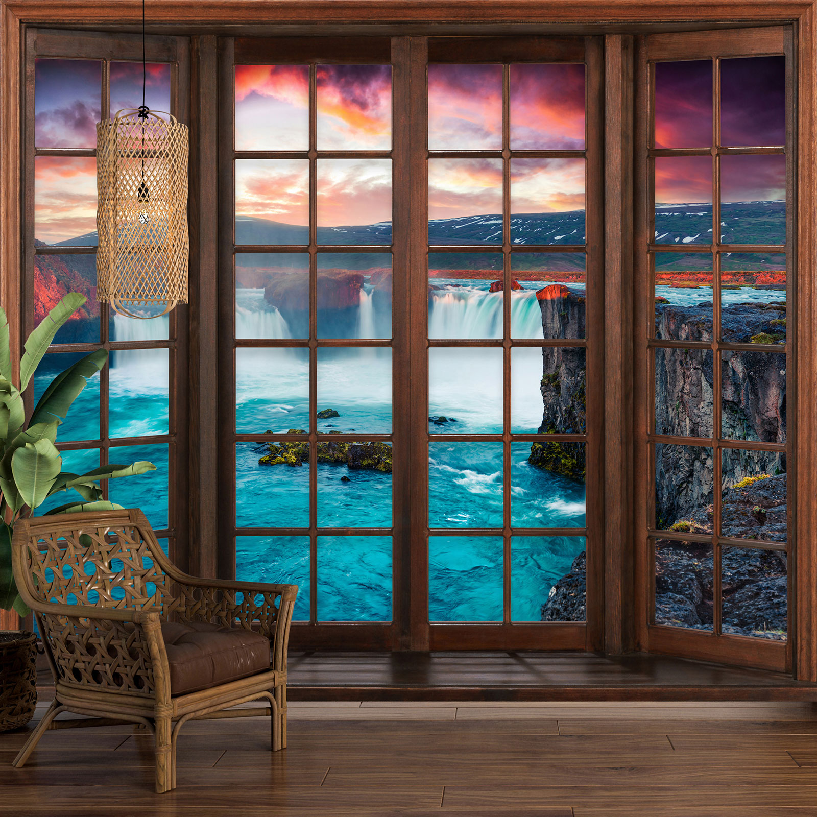 www.lumalea.fr > Papiers Peints > > > Papiers Peints Trompe L'oeil > Fenêtres Trompe-l'œil > Papier peint panoramique Trompe l'œil Fenêtre en bois - Cascades