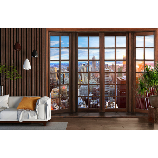 www.lumalea.fr > Papiers Peints > > > Papiers Peints Trompe L'oeil > Fenêtres Trompe-l'œil > Papier peint panoramique Trompe l'œil Fenêtre en bois - New York