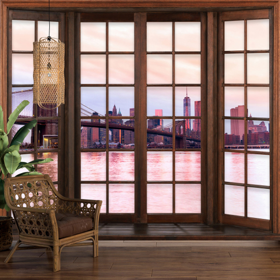Papier peint panoramique Trompe l'œil Fenêtre en bois - New York