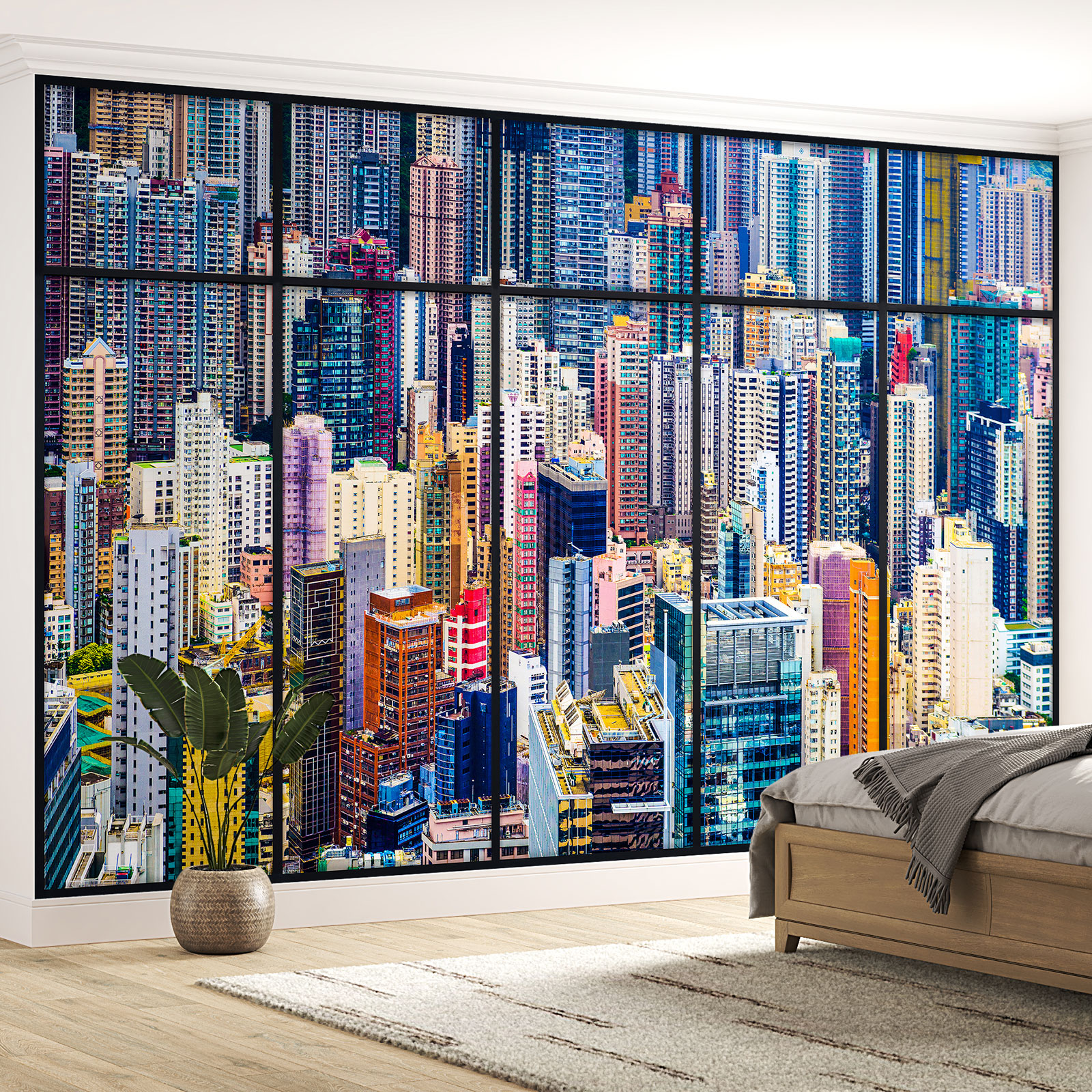Papier peint panoramique Trompe l'œil Verrière - Buildings colorés