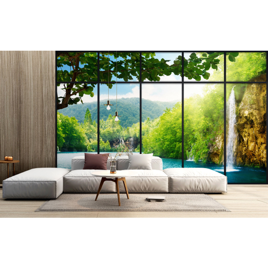 Papier peint panoramique Trompe l'œil Verrière - Cascades