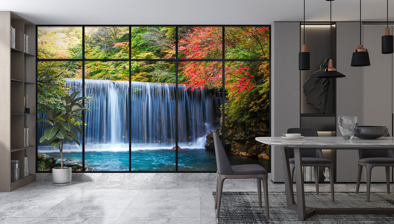 Papier peint panoramique Trompe l'œil Verrière - Cascades