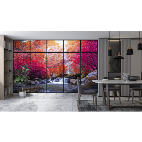 www.lumalea.fr > Papiers Peints > > > Papiers Peints Trompe L'oeil > Verrières Trompe-l'œil > Papier peint panoramique Trompe l'œil Verrière - Cascades