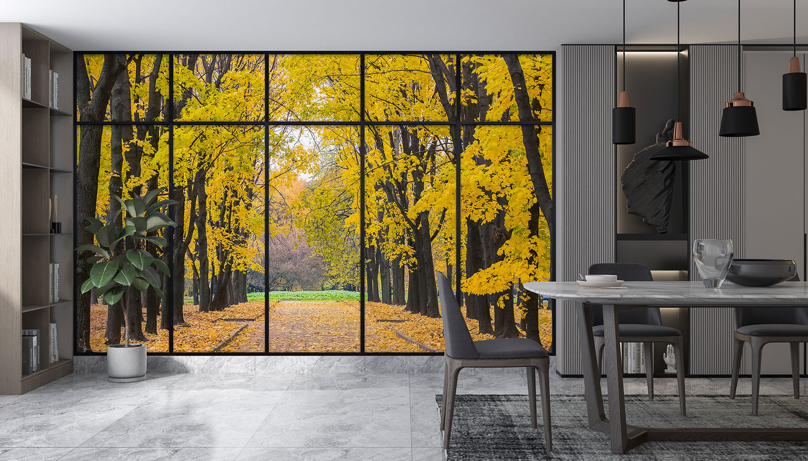 Papier peint panoramique Trompe l'œil Verrière - Chemin arbres