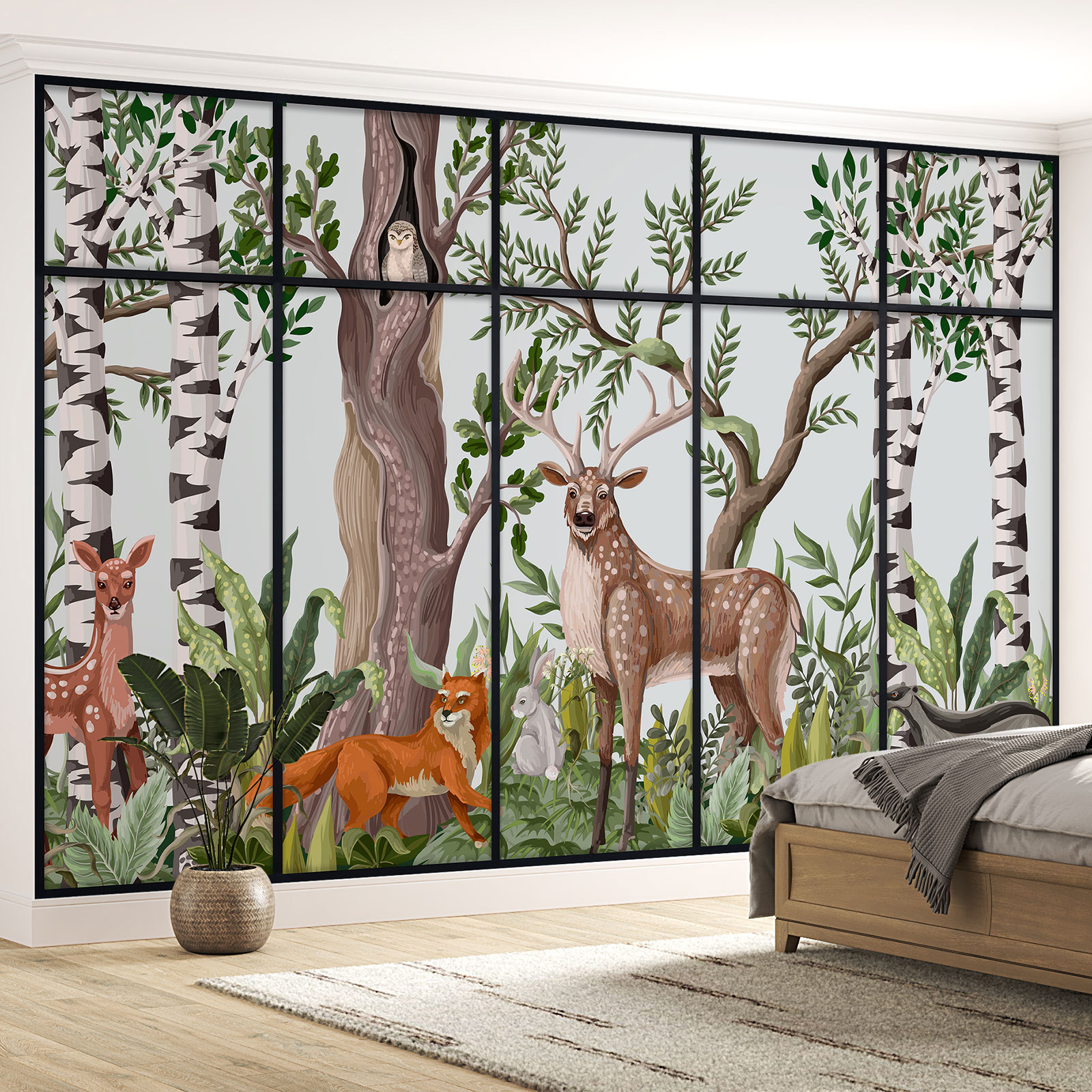 Papier peint panoramique Trompe l'œil Verrière Enfants - Animaux de la forêt