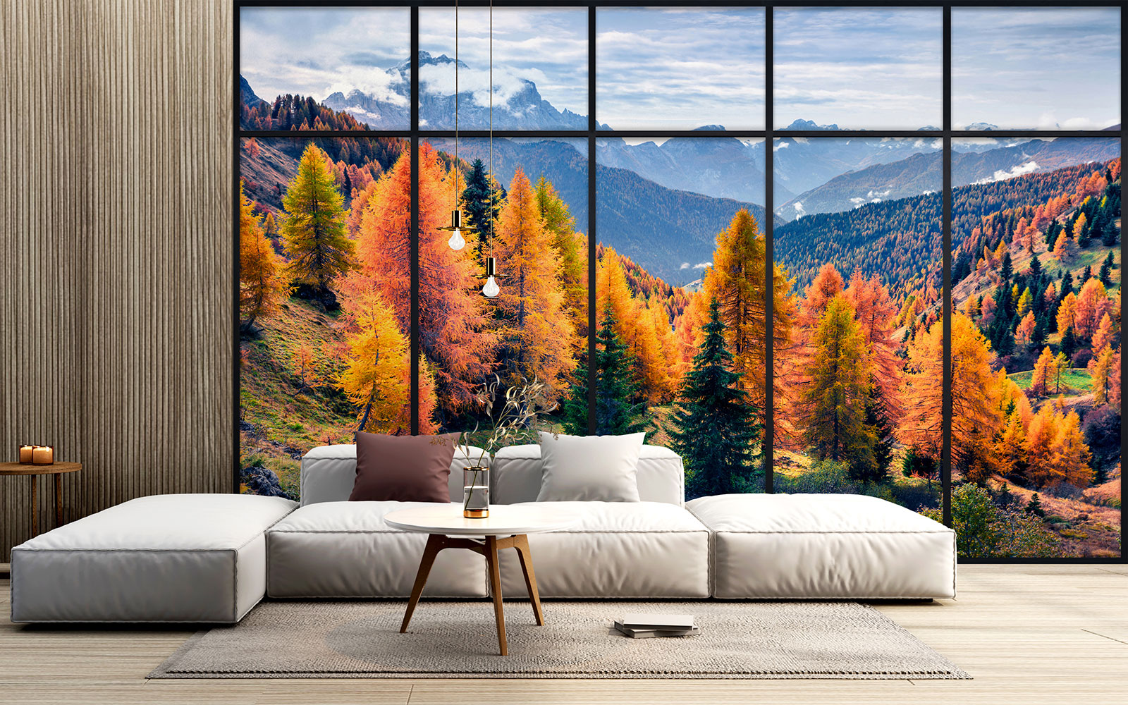 Papier peint panoramique Trompe l'œil Verrière - Forêt